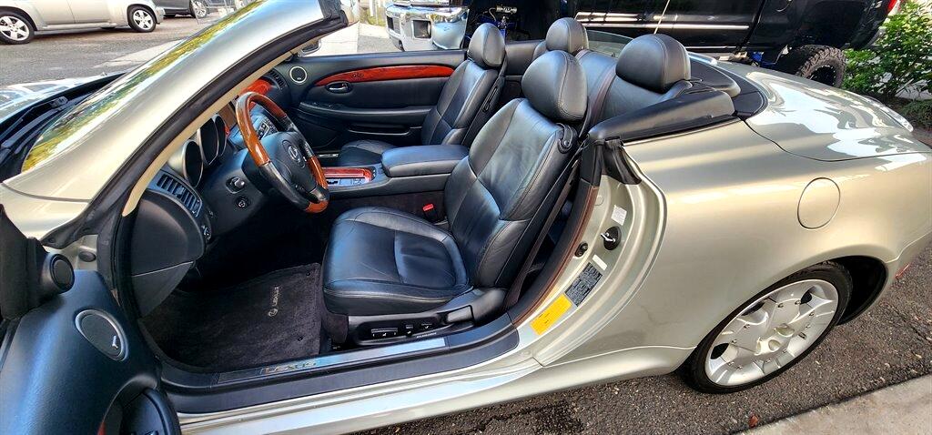 PRISTINE DRIVES LIKES NEW!! NO ACCIDENT NO SMOKER 2003 LEXUS SC430 HARDTOP CONVERTIBLE, NAVIGATION, SILVER WITH HEATED BLACK LEATHER, WOODGRAIN TRIM, 4.3L V8 WITH ONLY 97,657 MILES! 2 KEYS, JUST DID THE AISIN TIMING BELT KIT, CERPENTINE BELT, IRRIDIUM SPARK PLUGS, 245/40/18 BFGOODRICH TIRES, DUAL CHROME EXHAUST TIPS, MARK LEVINSON STEREO RDS, 6 DISC CD, TAPE, CLOCK, BLACK LEATHER/WOOD STEERING WHEEL WITH CONTROLS, POWER TILT/TELESCOPIC TRIM, CRUISE CONTROL, DIGITAL INFO CENTER, POWER TOP, HEATED SEATS, WINDOWS, LOCKS, MIRRORS, ANTENNA, KEYLESS ENTRY, AC, FLOOR MATS, DRIVER MEMORY, REAR DEFROST, LOOKS AND DRIVES GREAT!!