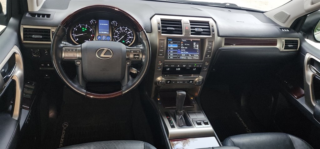 PRISTINE 2 OWNER NO ACCIDENT NO SMOKER 2017 LEXUS GX460 4WD, SUNROOF, BLUETOOTH, BACKUP CAMERA AND SENSORS, NAVIGATION, PEARL WHITE WITH BLACK COOLED/HEATED LEATHER, 7 PASSENGER, FOLDING 3RD ROW, WOODGRAIN TRIM, 4.6L V8 ONLY 101,420 MILES! 2 KEYS, OWNERS MANUALS, TOWING PACKAGE, DAC, NEW SPARE TIRE WITH JACK AND TOOLS, BRAND NEW 265/60/18 TIRES ON FACTORY ALUMINUM WHEELS, NEW ALIGNMENT, NEW FRONT CERAMIC BRAKE PADS AND ROTORS, NEW REAR PADS, NEW AIR FILTER, NEW OIL AND FILTER, BRAKE FLUID FLUSHED MAR 2024, CHROME GRILL, TRIM AND DOOR HANDLES, RUNNING BOARDS, REAR SPOILER WITH 3RD BRAKE LITE, REAR AC, WOOD/BLACK LEATHER STEERING WHEEL WITH CONTROLS, POWER TIL/TELESCOPIC TRIM, TILT AND CRUISE, DIGITAL INFO CENTER, HD DOLBY STEREO CD, SIRIUS, AUX, USB, CLOCK, WEATHER, TRAFFIC, COMPASS, RANGE TO EMPTY, HOMELINK, DRIVER MEMORY, OUTSIDE TEMP AND COMPASS, POWER FOLDING MIRRORS WITH TURN SIGNALS, SEATS, SUNROOF, LOCKS, KEYLESS ENTRY AND START BUTTON, FLOOR MATS, CARGO MAT, FOLDING REAR ARMREST, LOOKS AND DRIVES GREAT!!