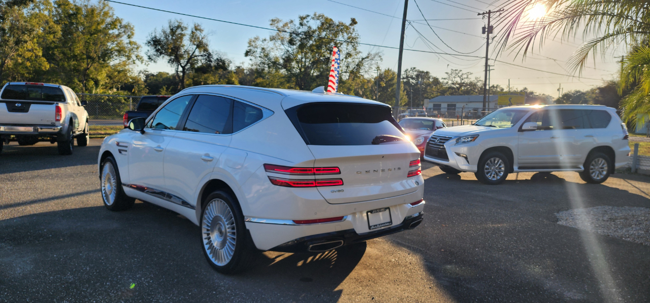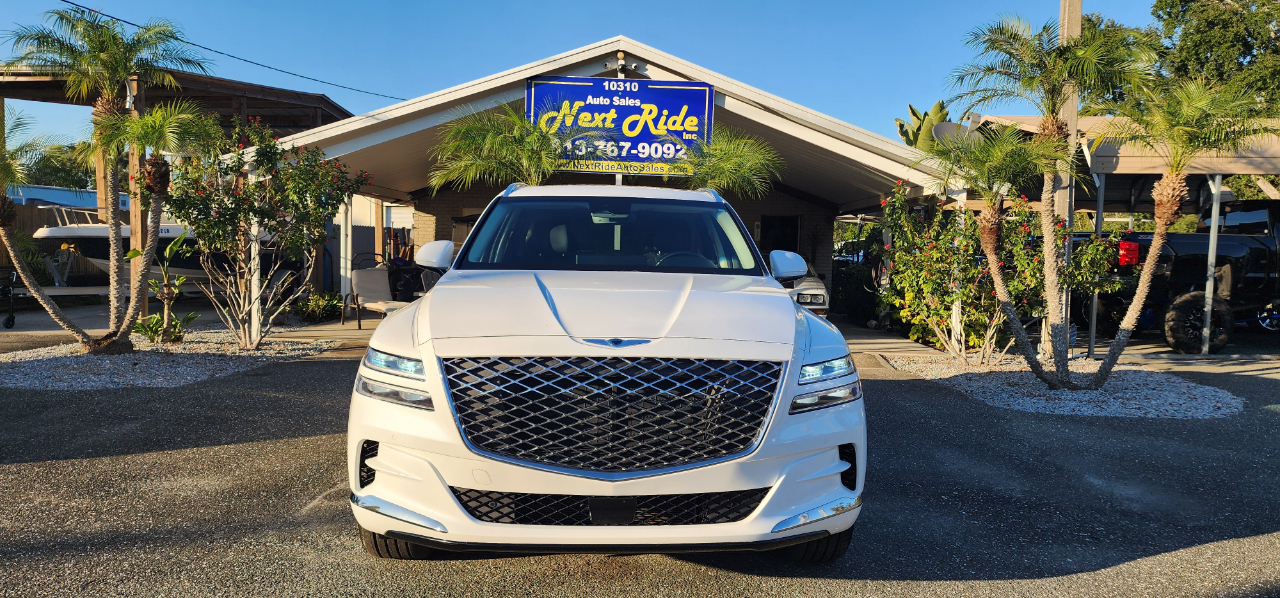 PRISTINE LIKE NEW 1 OWNER FLORIDA NO ACCIDENT NO SMOKER 2021 GENESIS GV80 ADVANCED, PANORAMIC SUNROOF, BLUETOOTH, PREMIUM NAVIGATION 14.5 INCH HD SCREEN, FORWARD COLLISION AVOIDANCE, BACKUP CAMERA/SENSORS, BLIND SPOT, DRIVER ATTENTION, HIGHWAY DRIVING ASSIST, LANE FOLLOWING/KEEPING ASSIST, PARKING SYSTEM WARNING, UYUNI PEARL WHITE WITH COOLED/HEATED BLACK LEATHER AND BLACK WOODGRAIN TRIM, 2.5L TURBO WITH 8 SPEED TRANSMISSION PADDLE SHIFTERS WITH ONLY 59,327 MILES! 10 YEAR /100K MILE POWER TRAIN WARRANTY, 7 YEAR/ UNLIMITED MILE ANTI-PERFORATION WARRANTY, OWNERS MANUALS, LIKE NEW 265/40/22 ON ASANTI BLACK LABEL WHEELS, CHROME GRILL, TRIM AND DOOR HANDLES, COOL VERY BRIGHT LED LIGHTS, HD LEXICON STEREO WITH 21 SPEAKERS, APPLE CARPLAY, ANDROID AUTO, EC MIRROR WITH HOMELINK, TOWING WIRING, REAR OCCUPANT ALERT, FLOOR MATS, CARGO MAT, POWER ROOF SHADE, HEATED BLACK LEATHER STEERING WHEEL WITH CONTROLS, POWER TILT/TELESCOPIC TRIM, DIGITAL INFO CENTER, OUTSIDE TEMP, POWER FOLDING MIRRORS WITH LIGHT SHOOTS LOGO TO GROUND.....COOL CAR LOOKS AND DRIVES LIKE NEW!!